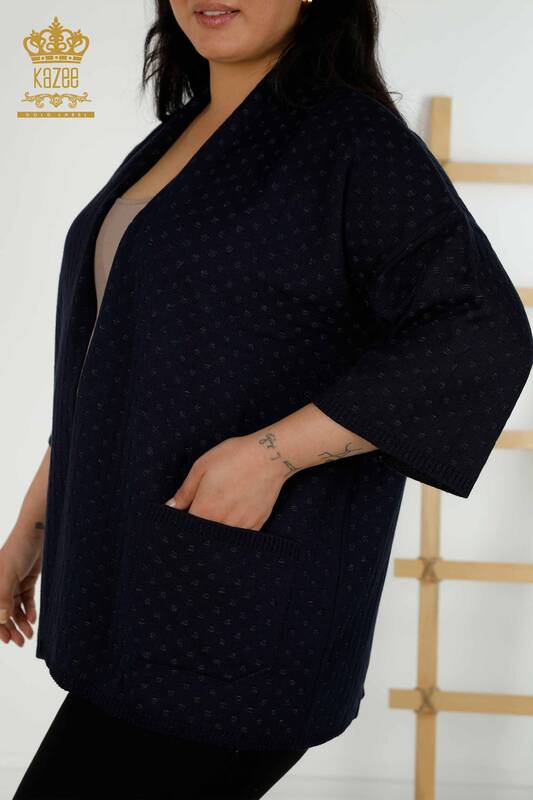 Hurtownia kardiganu damskiego z kieszeniami granatowa - 30056 | KAZEE