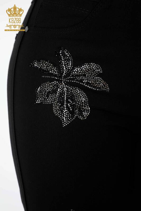Hurtownia Damskich Dżinsów Liść Wzorzysty Kryształowy Kamień Haftowana Kieszeń Czarny - 3562 | KAZEE