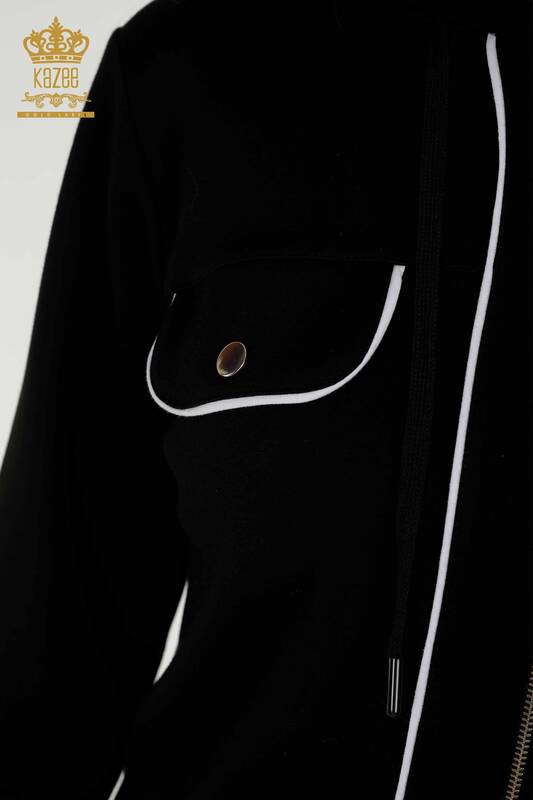 Hurtownia dresów damskich z dwiema kieszeniami i szczegółowym zamkiem błyskawicznym w kolorze czarnym Ecru - 17595 | KAZEE