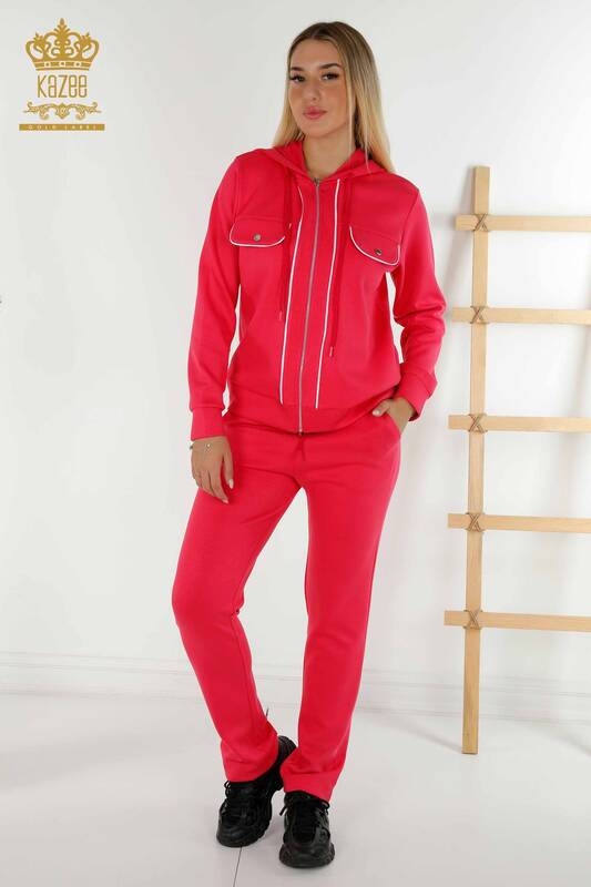 Hurtownia dresów damskich z dwiema kieszeniami i szczegółowym zamkiem błyskawicznym w kolorze fuksji - 17595 | KAZEE