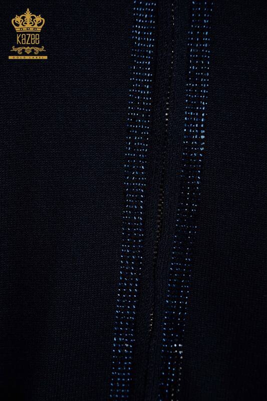 Hurtowy komplet damski dresowy, haftowany w kamienie, zapinany na zamek, granatowy we wzór panterki - 16662 | KAZEE