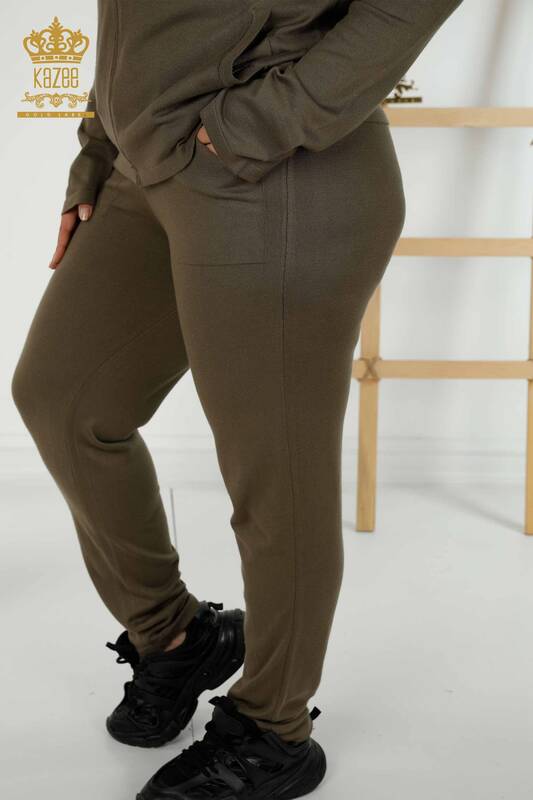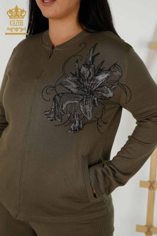 Hurtownia dresów damskich z kieszeniami w kwiaty, zapinana na zamek, khaki - 16661 | KAZEE