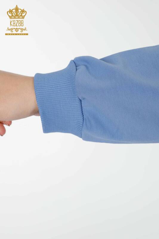 Hurtownia dresów damskich, wzorzyste skrzydła anioła, niebieski haft z kamieniami - 17481 | KAZEE