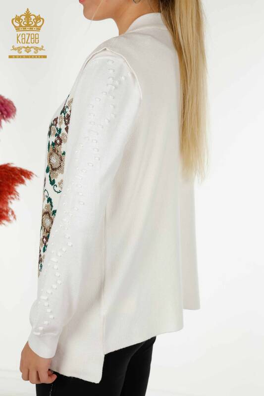 Hurtownia Kamizelek Damskich Kwiat Haftowany Kamień Haftowany Ecru - 30644 | KAZEE