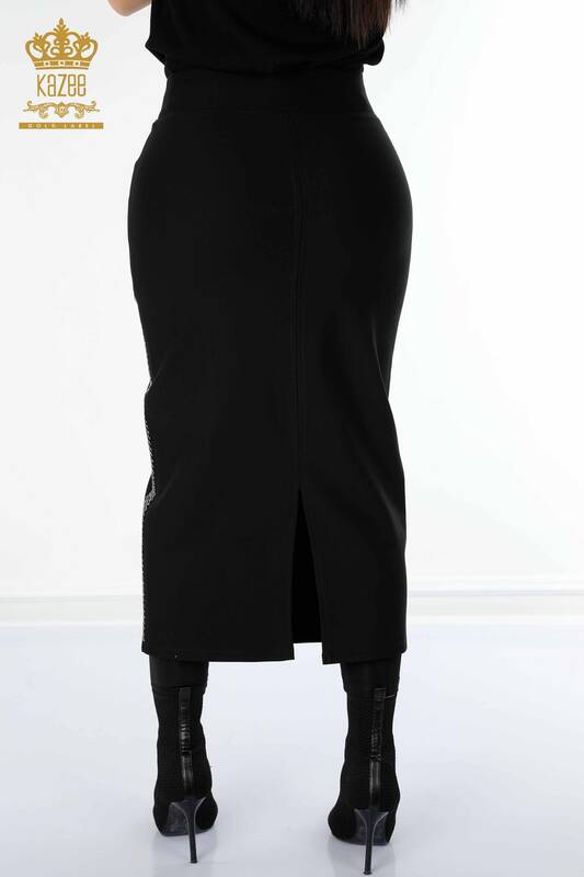 Hurtownia spódnic damskich z długimi kamieniami i haftowanymi rozcięciami w kolorze czarnym - 4187 | KAZEE