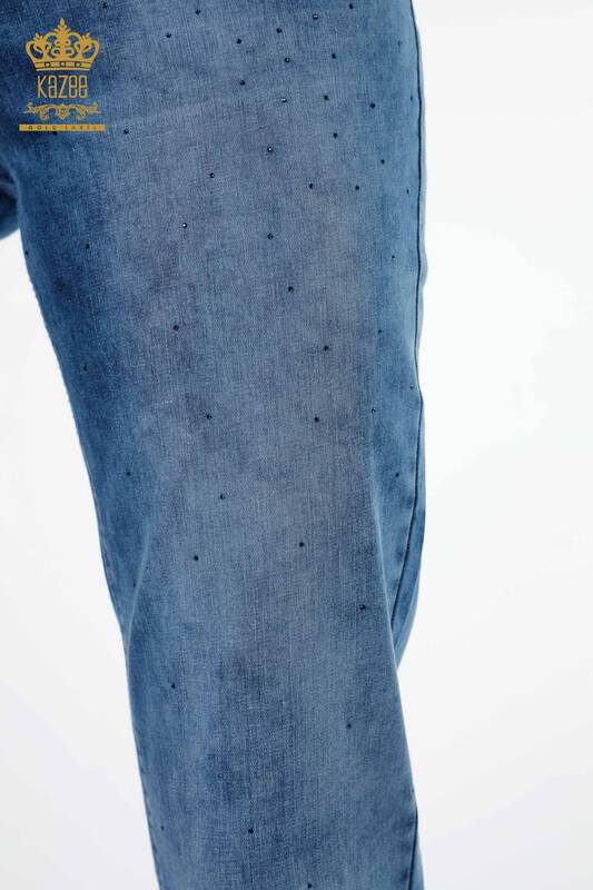 Hurtownia spodni damskich z haftowanymi kieszeniami z kryształowymi kamieniami - 3483 | KAZEE