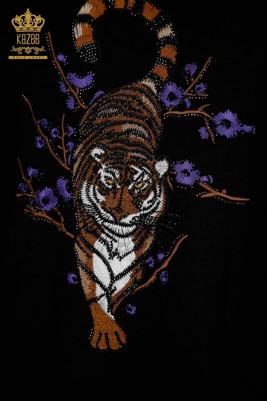 Hurtownia dresów damskich, zamek błyskawiczny haftowany w kamieniu, wzór w panterkę czarny - 16662 | KAZEE