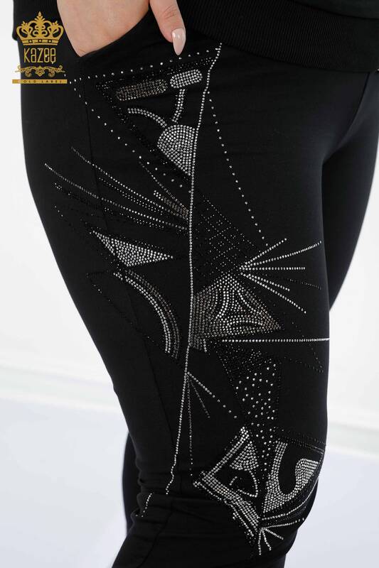 Hurtownia dresów damskich z haftowanym kamieniem i zamkiem błyskawicznym z kapturem w kolorze czarnym - 17395 | KAZEE