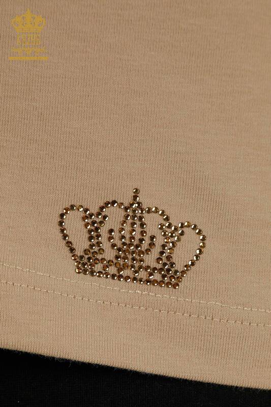 Vendita all'ingrosso Camicetta da donna basic manica corta girocollo beige - 79562 | KAZEE