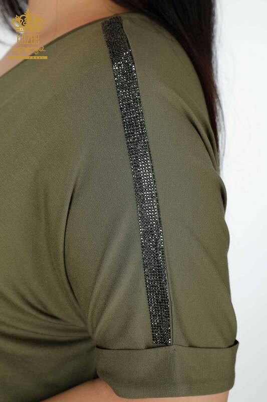 Vendita all'ingrosso Camicetta da donna con motivo a pietra colorata ricamata kaki - 78913 | KAZEE