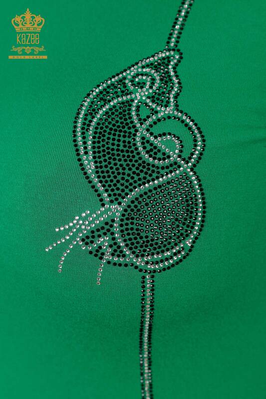 Camicetta da donna all'ingrosso con collo rotondo ricamato in pietra verde - 79000 | KAZEE
