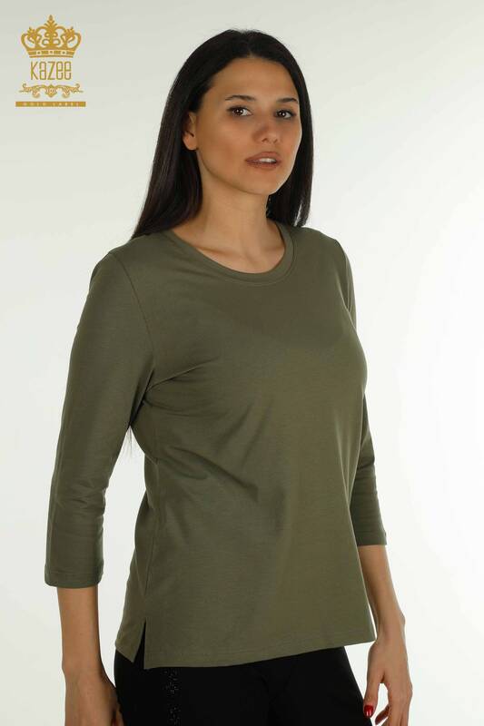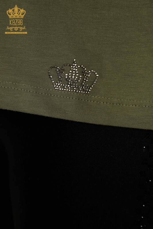 Camicetta da donna all'ingrosso pietra ricamata girocollo kaki - 79565 | KAZEE