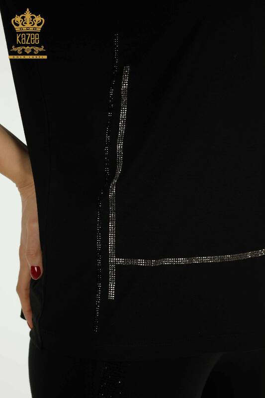 Vendita all'ingrosso Camicetta da donna con fiori ricamati in pietra ricamata nera - 79357 | KAZEE