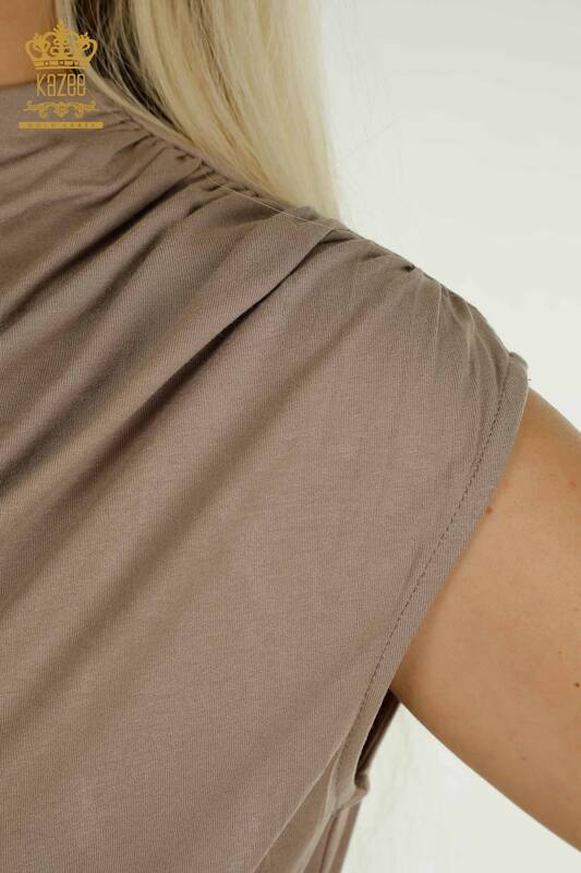 Camicetta da donna all'ingrosso Zero Sleeve Logo Mink - 79312 | KAZEE