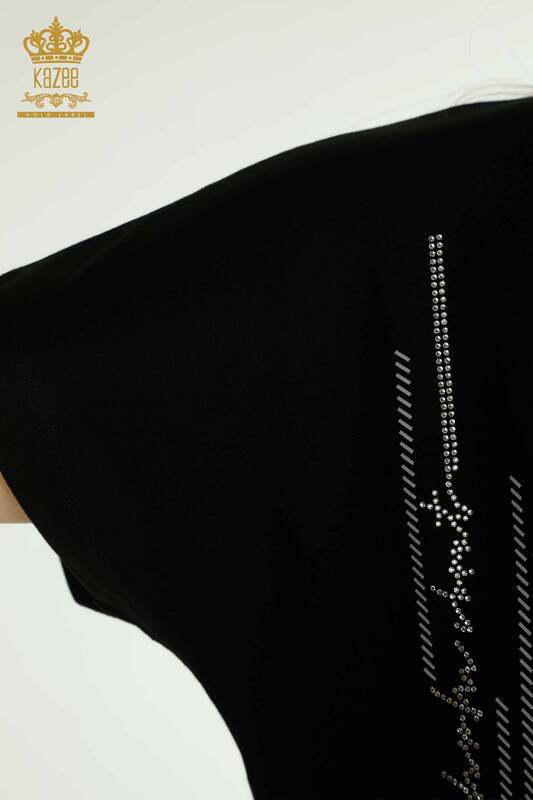 Vendita all'ingrosso Camicetta da donna con tasca dettagliata pietra ricamata nera - 79140 | KAZEE
