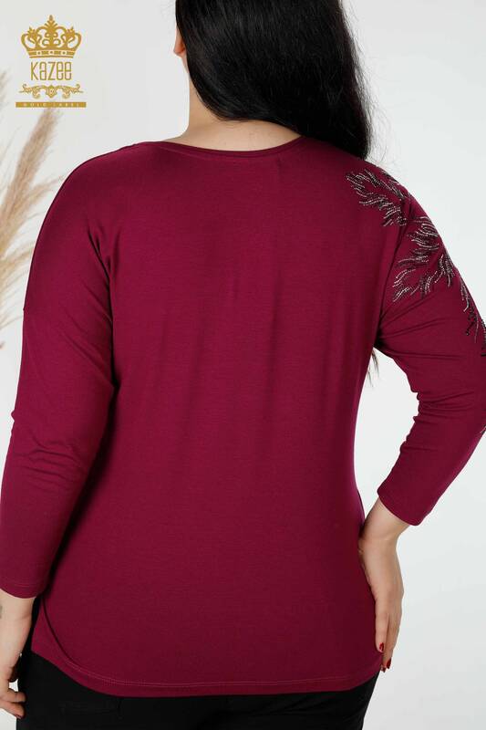 Camicetta da donna all'ingrosso con motivo a foglia ricamata in pietra lilla - 77970 | KAZEE