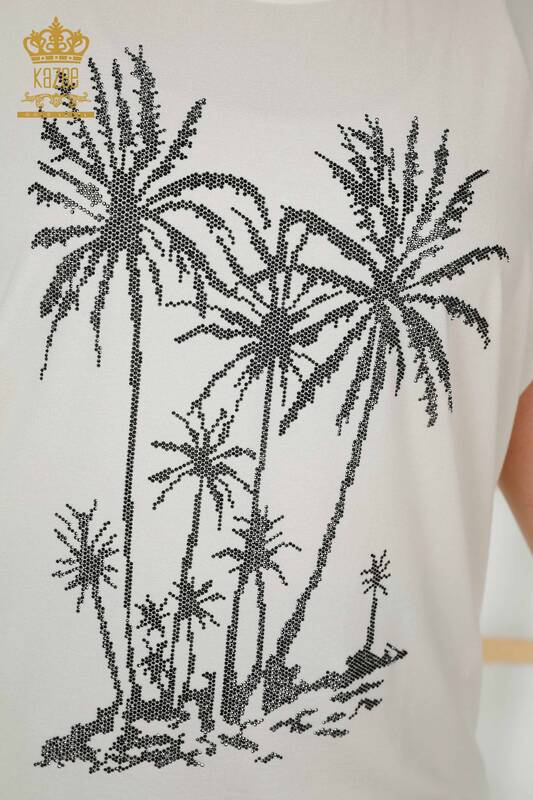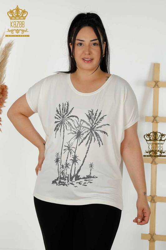 Commercio all'ingrosso Camicetta Donna Girocollo Stone Ricamato Manica Corta Ecru - 79336 | KAZEE