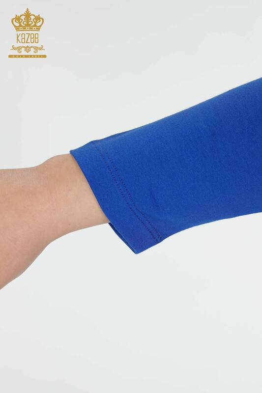 Camicetta da donna all'ingrosso Crystal Stone ricamata in tulle con scollo a V dettagliato Saks - 78911 | KAZEE