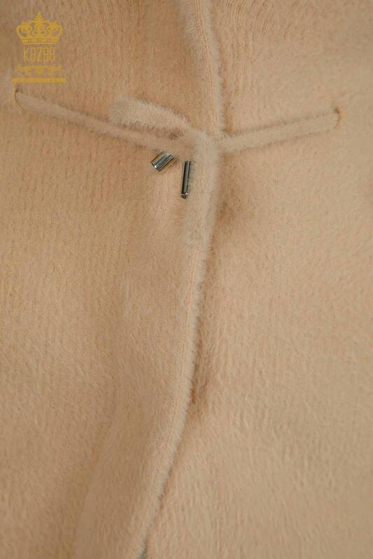 Cardigan in angora da donna all'ingrosso con dettaglio cravatta e tasche beige - 30269 | KAZEE