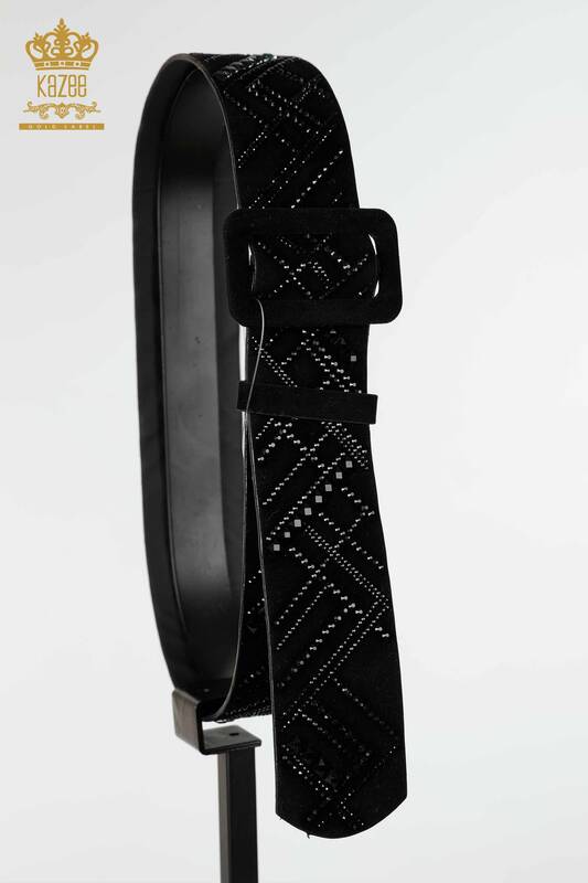 Cintura da donna all'ingrosso a righe con pietre di cristallo ricamate nere - 540 | KAZEE