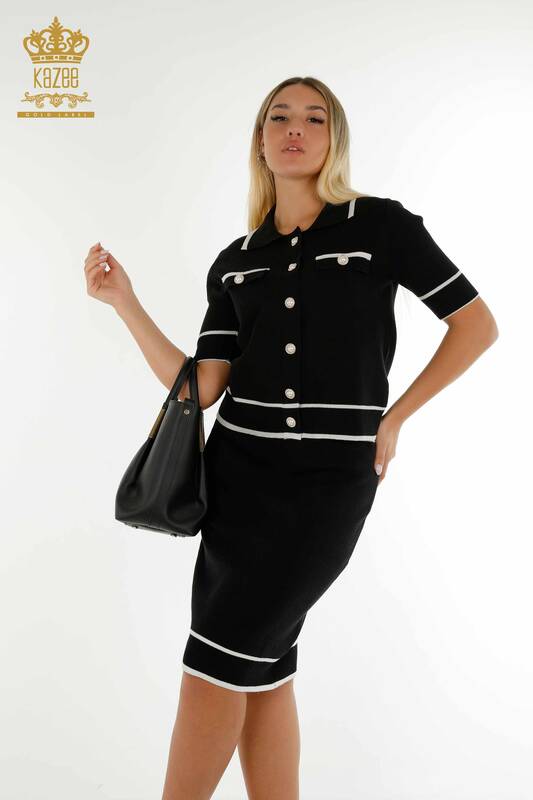 Abito a due pezzi da donna all'ingrosso con dettaglio bottoni e tasca nero ecru - 30303 | KAZEE