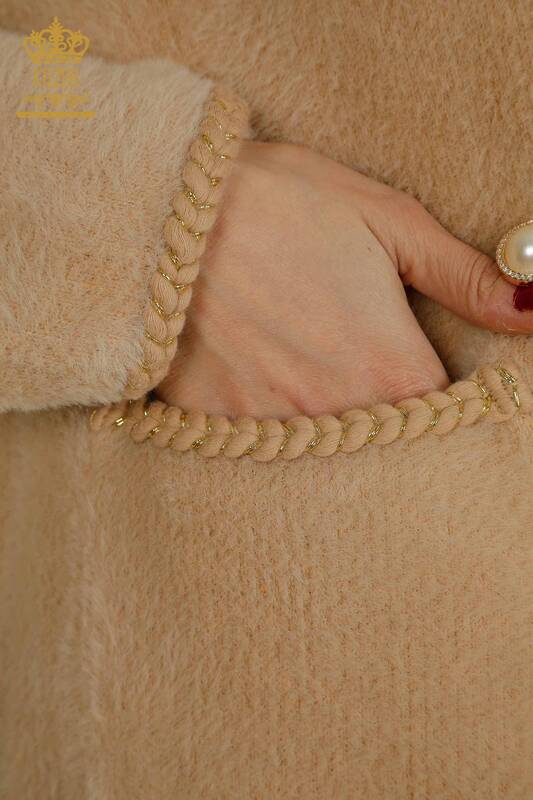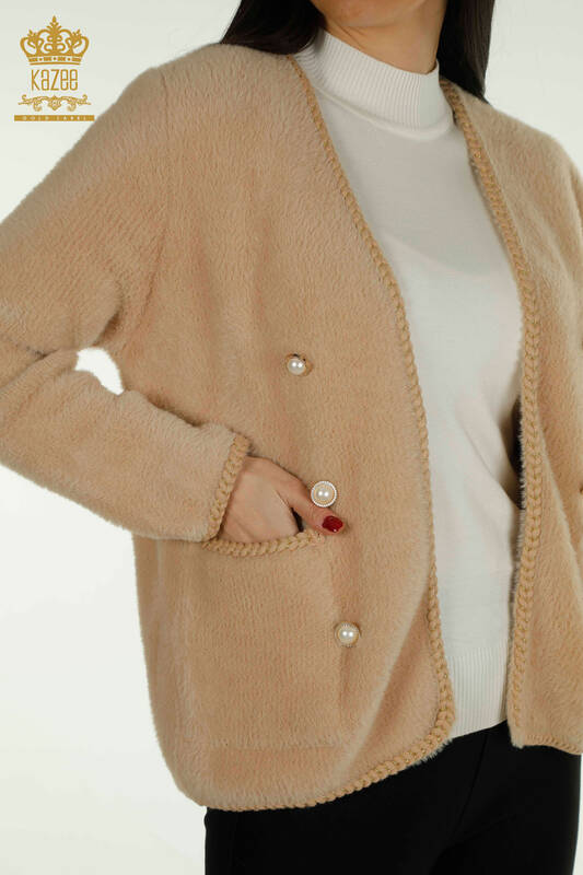 Cardigan in angora da donna all'ingrosso con bottoni dettagli tasca beige - 30799 | KAZEE