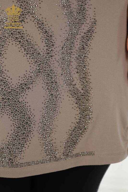 Vendita all'ingrosso Camicetta da donna con motivo a maniche corte in visone ricamato in pietra - 79070 | KAZEE
