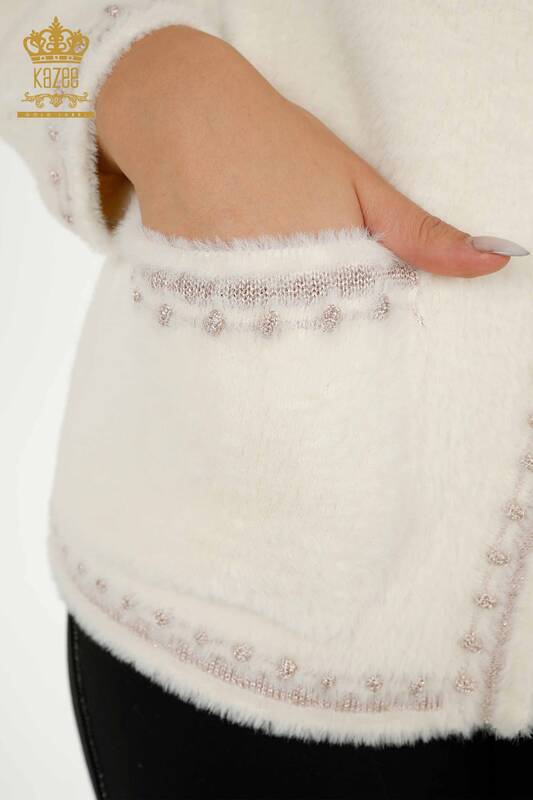 Vendita all'ingrosso Cardigan da donna Angora Due Tasche Ecru Glitterato - 30371 | KAZEE