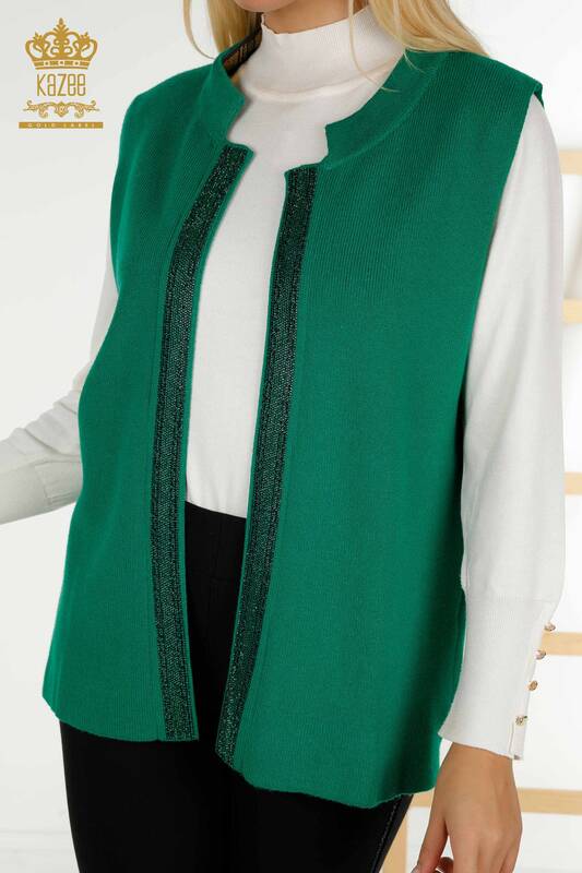 Vendita all'ingrosso Gilet da donna Crystal Stone ricamato verde - 30606 | KAZEE