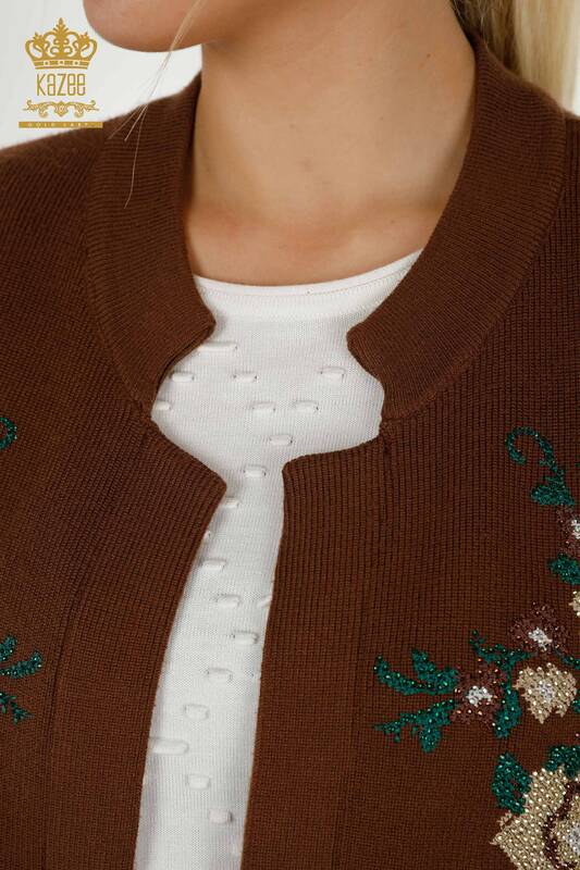 Vendita all'ingrosso Gilet da donna Fiore ricamato pietra ricamata marrone - 30644 | KAZEE