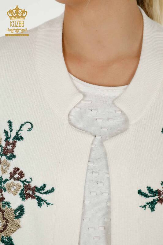 Vendita all'ingrosso Gilet da donna Fiore ricamato pietra ricamata ecru - 30644 | KAZEE
