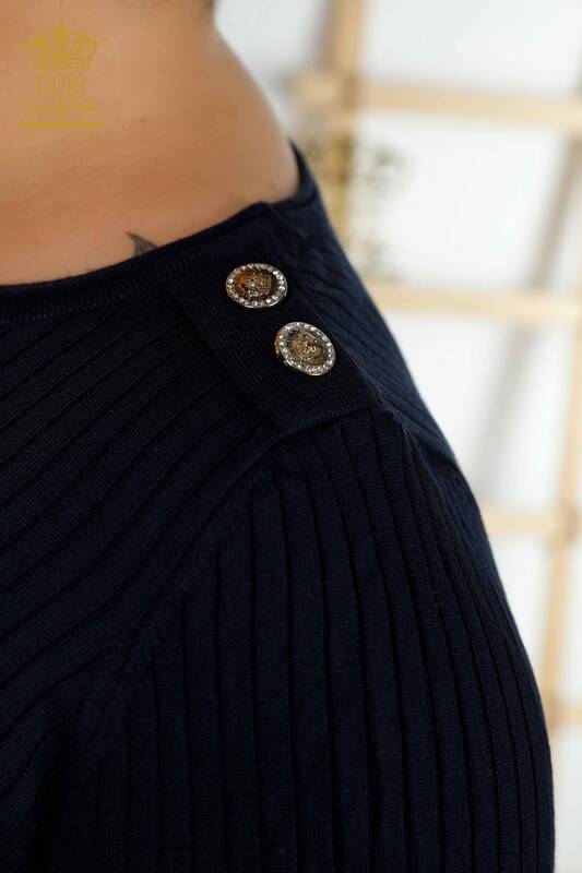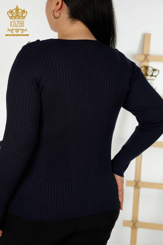 Maglieria da donna all'ingrosso maglione girocollo dettagliato blu scuro - 30045 | KAZEE