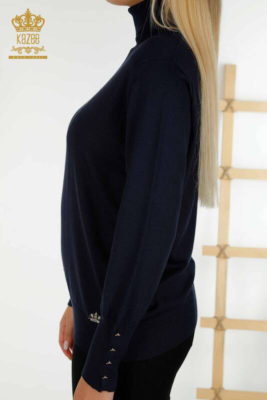 Maglione Maglieria da Donna all'ingrosso con Polsino Dettaglio Bottoni Basic Blu Navy - 30506 | KAZEE