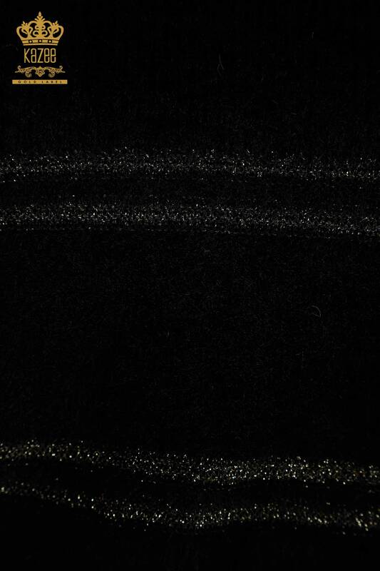 Maglieria da donna all'ingrosso maglione a righe Angora Glitter nero - 30680 | KAZEE