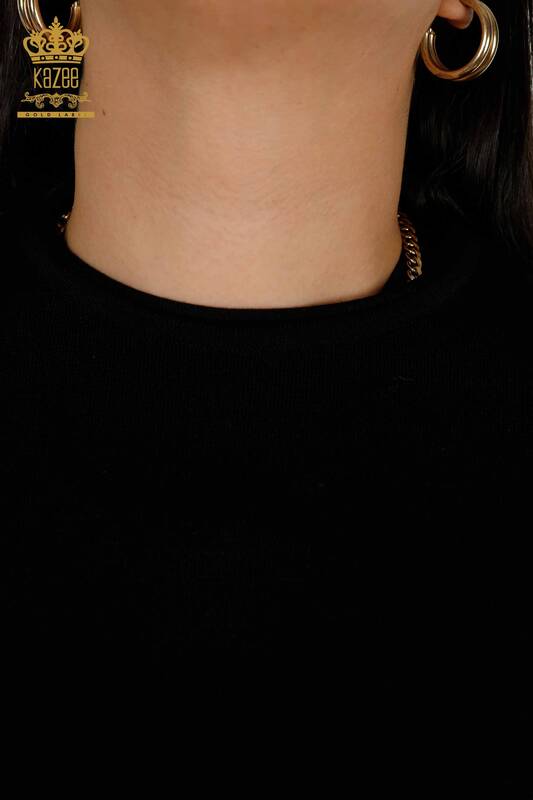 Vendita all'ingrosso Maglieria da Donna Maglia Modello Americano Basic Nera con Logo - 30443 | KAZEE