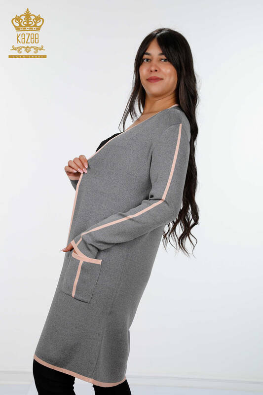 Tasca laterale a righe con maniche in cardigan da donna all'ingrosso - 14269 | KAZEE