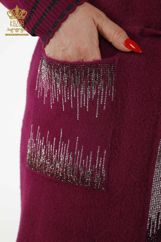 all'ingrosso Gilet da donna con cravatta in corda da tasca ricamata in pietra di cristallo viola - 30247 | KAZEE