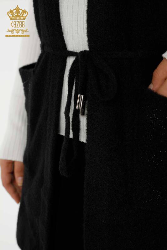 Vendita all'ingrosso Gilet da donna con due tasche legate in corda con pietra ricamata blu navy - 30582 | KAZEE