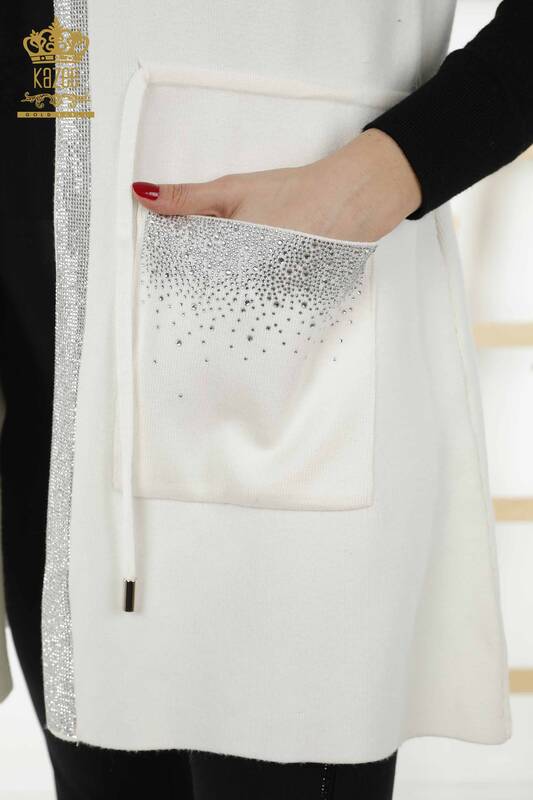 All'ingrosso Gilet Da Donna Leopard Stone Tasca Ricamata Ecru - 30308 | KAZEE