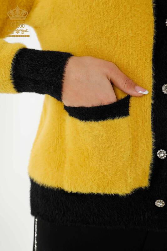 Maglieria Donna all'Ingrosso Cardigan Tasca Abbottonata Angora Gialla - 30094 | KAZEE