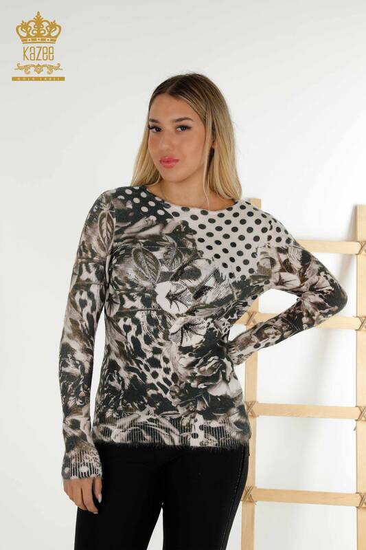 Maglieria da donna all'ingrosso Maglione Angora Stone Ricamato Fantasia Beige - 16000 | KAZEE