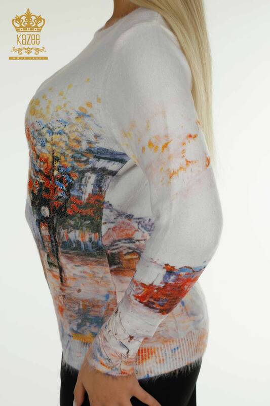 Maglieria da donna all'ingrosso maglione Angora stampato digitale manica lunga pietra ricamata digitale - 40036 | KAZEE