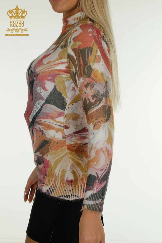 Vendita all'ingrosso Maglieria da donna Maglione Angora Fiore Modellato manica lunga pietra ricamato digitale - 40043 | KAZEE