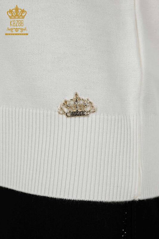 Maglieria Donna all'Ingrosso Maglione Modello Americano Basic Logo Ecru - 30254 | KAZEE