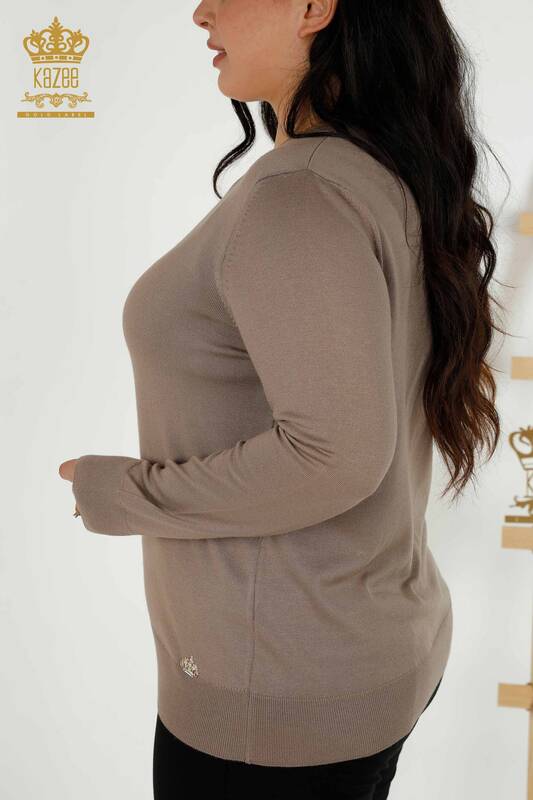 Maglieria da donna all'ingrosso Maglione Basic Logo Girocollo Visone - 30213 | KAZEE