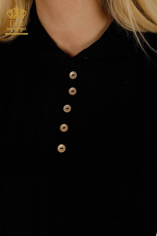 Vendita all'ingrosso Maglieria da donna Maglione con bottoni intrecciati in nero - 30134 | KAZEE