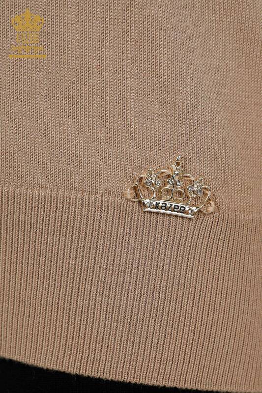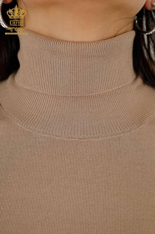 Commercio all'ingrosso Maglieria Donna Maglione Dolcevita Basic Logo Beige - 11122 | KAZEE