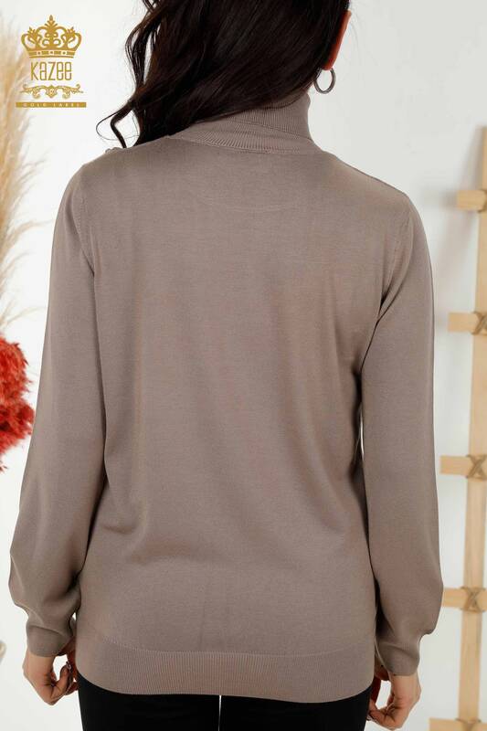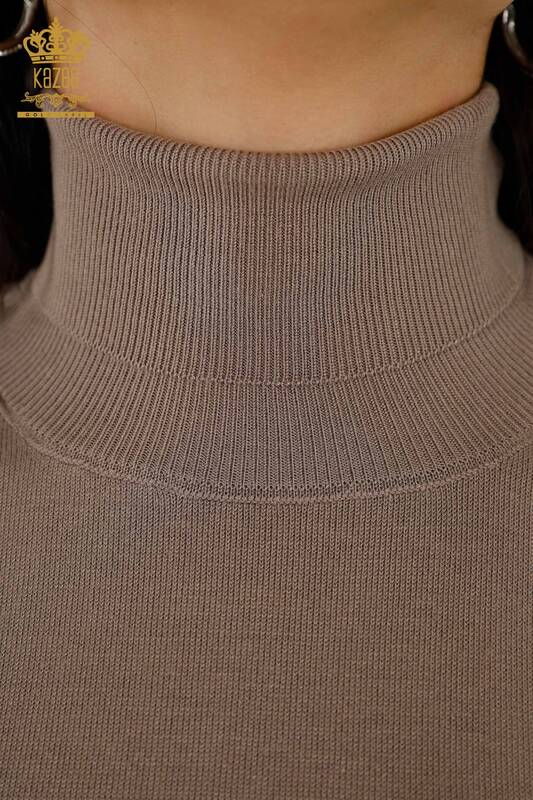 Commercio all'ingrosso Maglieria Donna Maglione Dolcevita Basic Logo Visone - 11122 | KAZEE