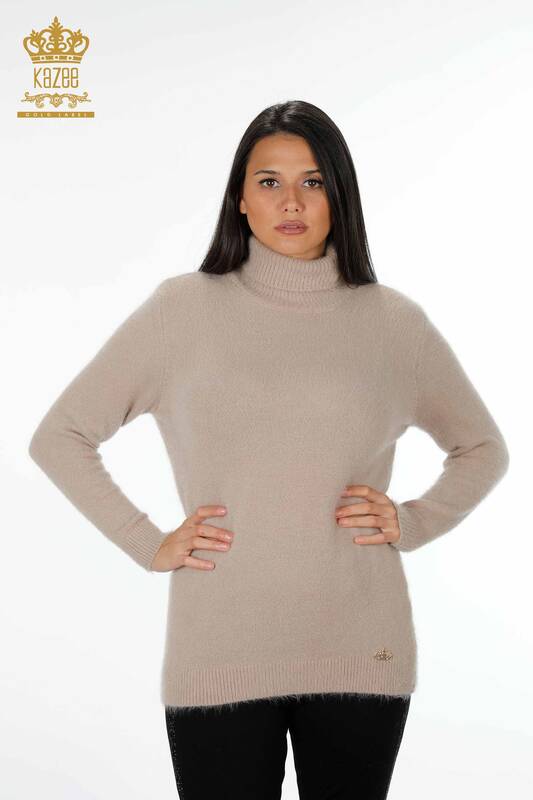 Maglieria da donna all'ingrosso Maglione Dolcevita Manica lunga Logo - 18843 | KAZEE