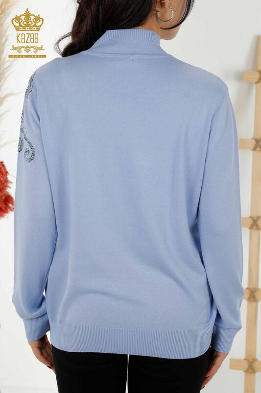 Maglieria da donna all'ingrosso Maglione con motivo Crystal Stone ricamato blu - 30013 | KAZEE